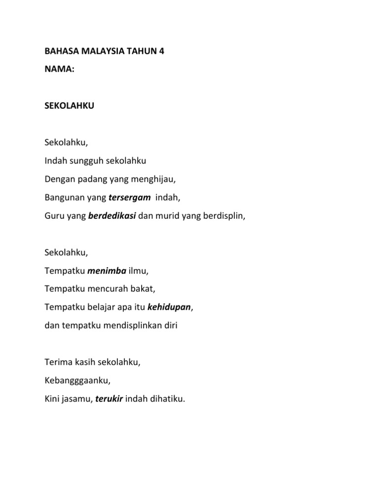 Baca versi flipbook dari bahasa melayu tingkatan 1. Memandangkan perkataan dalam bahasa melayu kerap kali mempunyai banyak sukukata bilangan sukukata 5 atau 7 agak terlalu pendek dan tidak cukup untuk. Jadilah apa pun pada akhir kehidupanmu guruku Budi yang diapungkan di dulang ilmu Panggilan keramat cikgu kekal terpahat Menjadi kenangan ke akhir hayat.